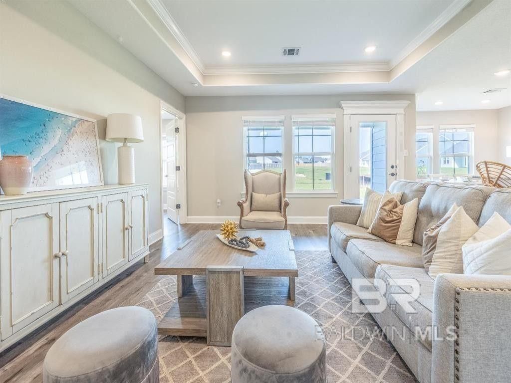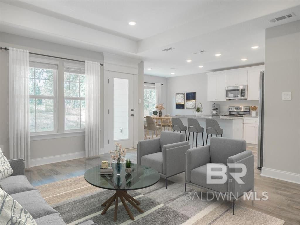 Move-in ready new construction just under 10 miles from the white sandy beaches of the Alabama Gulf Coast. Built by Meritage Homes, the single-story Opal floorplan offers 3 bedrooms, 2 bathrooms of well-designed living space. The open layout brings the kitchen, dining, and great room together in one cohesive area designed for both daily living and entertaining. The kitchen provides ample cabinetry, generous counter space, and a central workspace that overlooks the main living area. The split floorplan includes a primary suite with a bathroom that includes dual vanities, and a walk-in closet. Two additional bedrooms and a full bathroom offer versatile space for a home office, guests, or hobbies. A covered rear patio extends the living area outdoors. Constructed to GOLD Fortified??? standards, this home may provide enhanced durability and potential insurance savings. Convenient access to the Baldwin Beach Express and Highway 98 places you minutes from Foley, Gulf Shores, Orange Beach, Mobile, and Pensacola. Nearby destinations include Tanger Outlets Foley, OWA Parks & Resort, and Publix, along with shopping, dining, and coastal recreation throughout the Alabama Gulf Coast. If you are searching for a home in Elberta, AL with single-level living near Orange Beach, Gulf Shores and Foley conveniences, the Opal floorplan delivers modern design in a convenient coastal location. Please note: Photos are of a previously built home and may include optional features or finishes that vary from the actual property. Buyer to verify all information during due diligence.