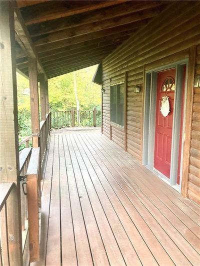 Charming Log Home with Expansive Outdoor Living & Scenic Wooded ViewsBeautifully crafted log home, nestled on a serene wooded lot, designed for both comfort and character. A spacious 8? x 50? covered front porch invites you to relax and enjoy the natural surroundings, while a 38? x 14? rear deck?accessible from both the laundry room and great room?offers the perfect space for entertaining or quiet evenings outdoors.Inside, you'll find solid oak doors on the first floor and pine doors upstairs, adding warmth and rustic elegance throughout. The main level features a flexible study or third bedroom adjacent to a full bath, ideal for guests or a home office setup. The open-concept great room boasts a wood stove set against a striking stone accent wall, with a loft above offering stunning views of both the great room and the surrounding forest.Upstairs, the loft space adds a cozy and open feel, overlooking the great room below and enhancing the home?s connection to nature. The walk-out basement leads directly to a large yard and a convenient parking pad, offering plenty of usable outdoor space.Whether you're seeking a full-time residence or a weekend retreat, this log home combines rustic charm, modern comfort, and a beautiful natural setting.