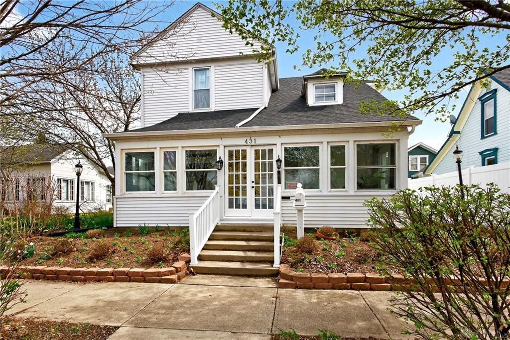 Discover timeless elegance and spacious living at this tranquil and delightful 4-bedroom, 2-story residence located at 431 S Walnut St in Troy, OH. The charming home features classic architectural details, and an inviting enclosed front porch/sunroom, perfect for peaceful living. Rich hardwood flooring flows throughout the bright and inviting living spaces, creating a warm ambiance. The main living area boasts a fireplace and abundant natural light, seamlessly connecting to the adjacent dining room, which also features a stylish chandelier and bay window. The cozy kitchen is equipped with a range, ample wood cabinetry, durable countertops, and a bright eating area. A convenient laundry area offers functional appliances, including a washer and dryer. Each of the four bedrooms provides a tranquil retreat with hardwood floors and bright windows. The full bathroom features classic tile surrounds, adding charm and function. In addition to the lovely home, this property also includes an english country flower garden that leads to a two story carriage house that could be used as a studio, playroom or guest area. Recent updates include new roofs on both the main house and carriage house, new stove, refrigerator and dishwasher, new light fixtures, fresh paint and several new windows in the main house.