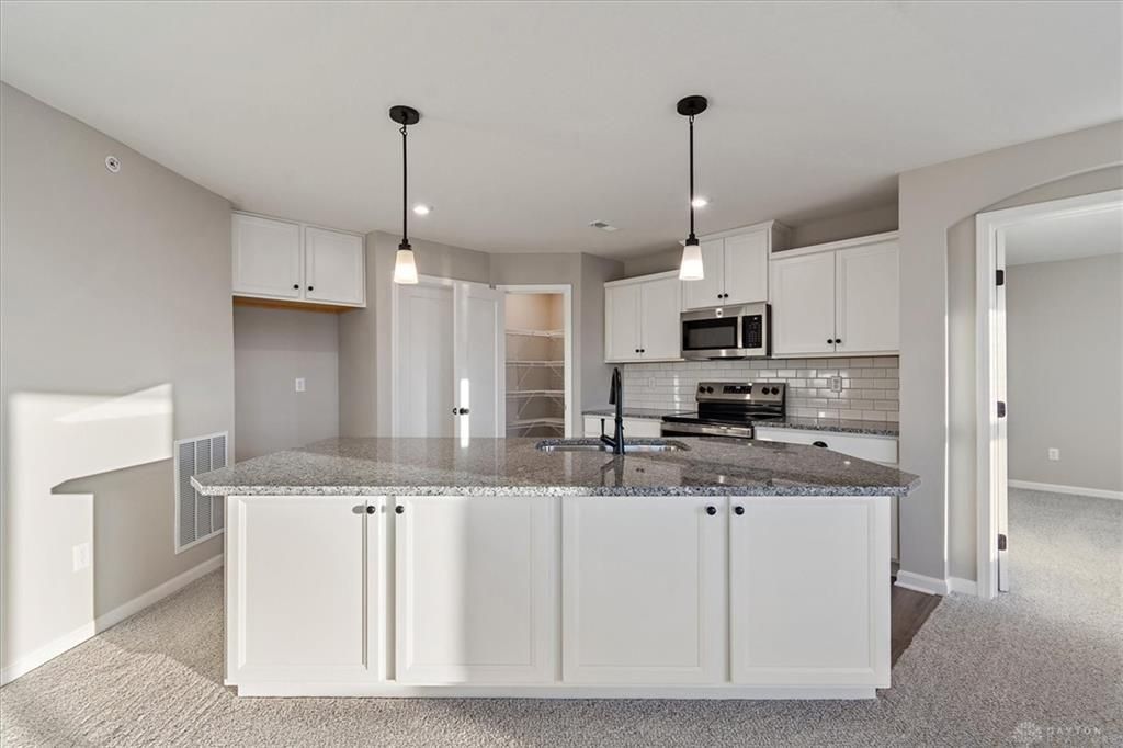 Stylish new Hayward plan by Fischer Homes in beautiful Majors at Shaker Run featuring a no-step condo offering a gorgeous islandkitchen with stainless steel appliances, upgraded multi-height cabinetry, gleaming granite counters, walk-in pantry and walk-out diningroom to the covered deck and open to the spacious family room. Private study with French doors just off of foyer. The primary suiteincludes an en suite with a double bowl vanity, walk-in shower and 3 closets 2 being walk-in closets. Additional bedroom and hall bath.Attached one bay garage.