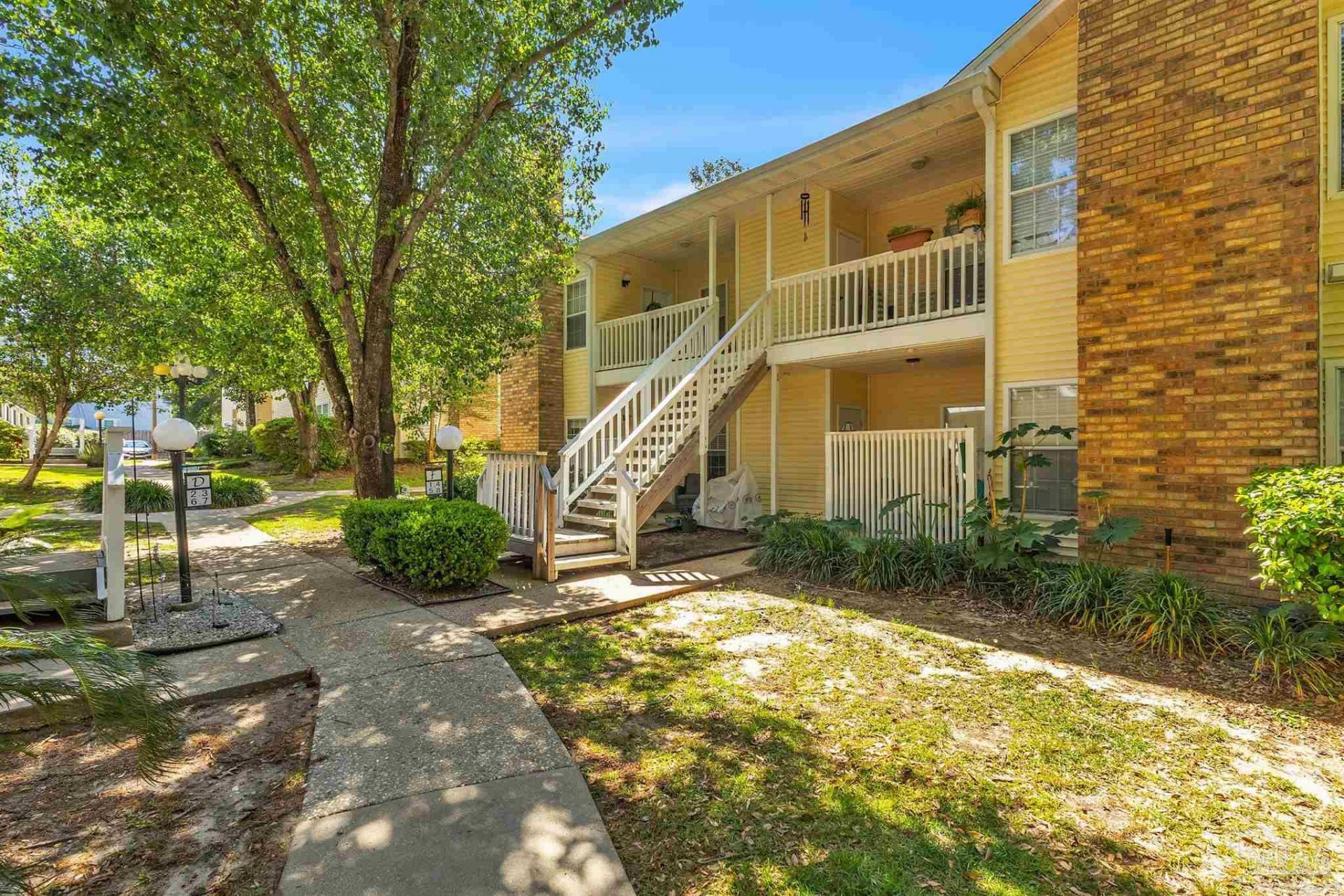 Upstairs Unit F5 at Riverwalk Condos offers low-maintenance living in a convenient Pensacola location near shopping, I-10, hospitals, and local colleges. This 1-bedroom, 1-bath condo features all new LVP flooring, recently painted, a full kitchen, in-unit washer and dryer, wood-burning fireplace, and a spacious bedroom with a walk-in closet enhanced with custom closet upgrades. All furnishings will be included with acceptable offer. The HOA maintains the grounds, pool, and trash service, making day-to-day ownership simple. The condo has also been used for longer-term rental use, while short-term rentals are restricted by the HOA.