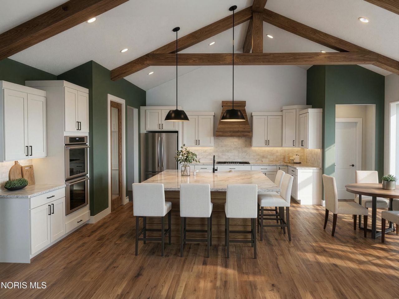 This home was designed, interior-designed, and built by award-winning and high-end custom builder, Homes by Josh Doyle. This new construction custom home offers the highest level of structural quality and energy efficiency. Features include ½ closed cell spray foam exterior walls with fiberglass batt insulation & R-50 ceiling insulation (perfect for rising energy costs!), 4000 PSI concrete w/ fiber mesh foundation walls, premium-grade studs and OSB, and top-tier basement drainage and waterproofing systems. This quality is un-matched in the industry for spec homes. The layout is a perfected 'master class' custom home design specifically for this lot. NOT COOKIE CUTTER. Learn more about the quality on the How We Build page of their website. Contact directly to do a 3D walk-through of the home to visualize interior finishes and layout in a virtual meeting or in-person at HQ in Whitehouse, Ohio. This residence is situated ON A WATER LOT in the highly sought-after Hidden Hollow section of Crimson Hollow Subdivision in Monclova, OH. Homes by Josh Doyle has been designing and constructing distinctive custom homes in this premier community for 10 years, with only a few lots left! This spectacular 'split' ranch-style home features an incredible 2,572 square foot single-floor layout. The open-concept design flows seamlessly from the chef's kitchen to an eat-in dining with a stunning great room and a bright sunroom, both featuring cathedral ceilings. A private den is elegantly accessed by glass double doors right off the entryway. The primary suite is a true retreat with a massive walk-in closet that leads into the laundry room, a custom tile shower, a double sink vanity, and a luxurious freestanding soaking tub. The home also features 2 additional bedrooms with their own separate and private hallway, connected bath has double sink vanities & private tub/shower/toilet room. The everyday entrance from the oversized 3-car garage leads into a dedicated mudroom with custom built-in lockers, a closet and entrance to the separate laundry room. EXTERIOR: This home offers incredible curb appeal with striking black windows, an elegant black front door, and sleek long-panel black garage doors. Beautiful painted siding with crisp board-and-batten details is perfectly highlighted by gorgeous stone accents along the base. Custom stained cedar touches, including the inviting front porch columns and beautiful decorative wood accents, give the outside a true high-end feel. INTERIOR: Inside, beautiful ceiling trusses in the great room & kitchen show how truly custom this interior is. A breathtaking kitchen awaits with gleaming quartz countertops, a custom stained wood hood, a beautiful tiled backsplash, and a frosted glass door leading to a walk-in pantry. a massive floor-to-ceiling stone fireplace in the great room (with built-ins on both sides) and a cozy stone and shiplap fireplace in the sunroom. Extra-wide plank floors flow seamlessly through the main living space,